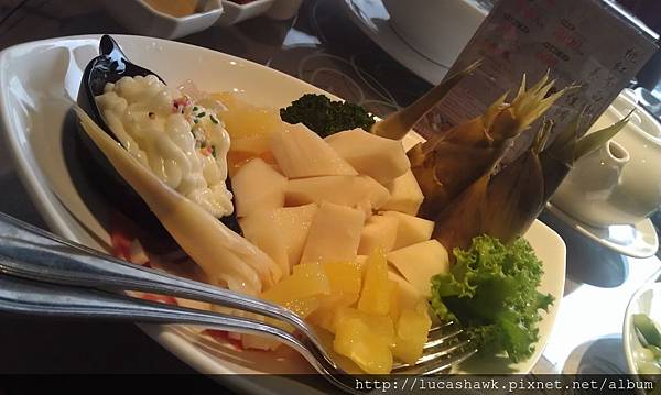 這冷筍脆,旁邊的鳳梨可不只是陪襯,也是香甜可口