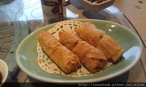 鮮蝦腐皮捲,炸的真是酥脆,裡面也有偷偷藏有彈牙的秘密武器-蝦仁喔~~(又是蝦)