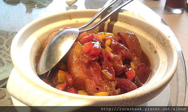 雖然是淋上醬汁,原本酥脆的豬腳滲入了濃郁的湯汁後,跟原本豬腳的肉汁結合
