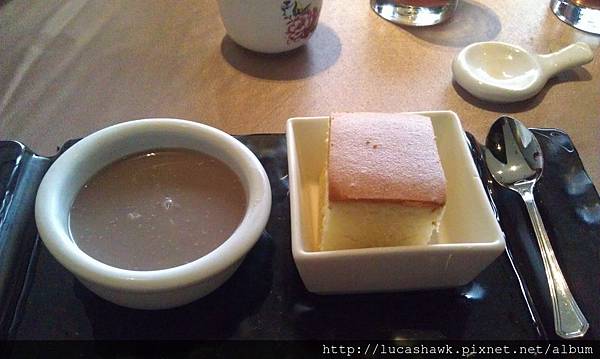 最後,依人數都會有一盤甜點,紅豆湯配蜂蜜蛋糕,蜂蜜蛋糕超大塊