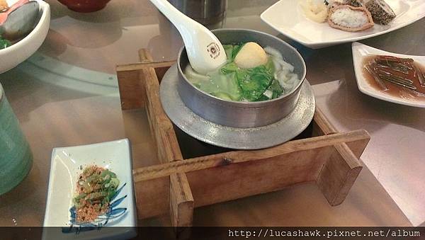 鍋燒麵,這碗麵真的不簡單,麵的表面滑溜,咬下去卻會彈牙,湯頭鮮甜,不錯,還附上七味粉喔!!