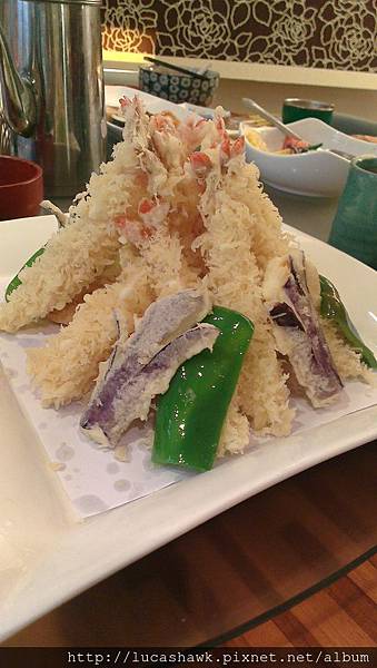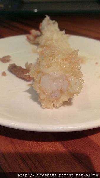 炸蝦天婦羅,服務阿姨還特別告訴我們不用另外點野菜天婦羅了,因為炸蝦裡面會放一些野菜,有地瓜、青椒、茄子,應有盡有,瞧瞧這炸蝦,簡單的炸麵皮加上大隻的蝦,這才叫炸蝦嘛~~~