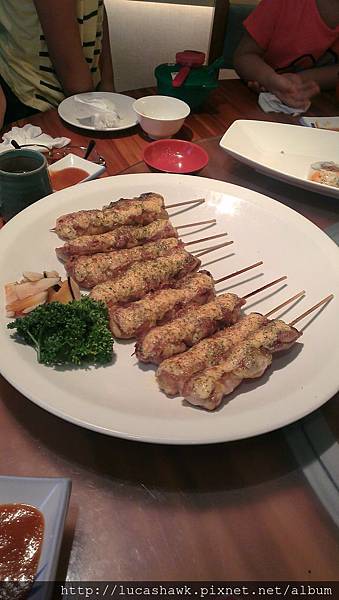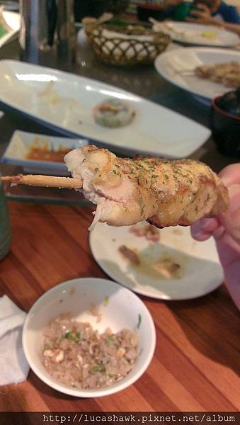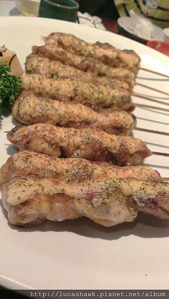 這是四人份的喔!!雞串奶油太子燒,應該是雞腿肉下去烤,搭配上面濃郁的奶油,還有明太子,我個人經驗,如果明太子不夠新鮮,等到冷掉後,整個腥味會很重,這串上面酥酥的,濃郁的奶油香,又有明太子的海味,雞肉超嫩又多汁,舌頭都快溶化啦~~~