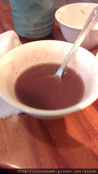吃完還有甜點紅豆湯喔!!雖然一碗少少的,但是煮得剛剛好,甜度濃度都適中,我忍不住又吃了一碗