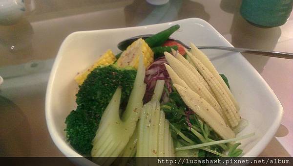 沙拉,新鮮蔬菜,用簡單的和風醬油調味,沒土味