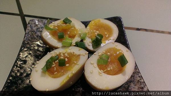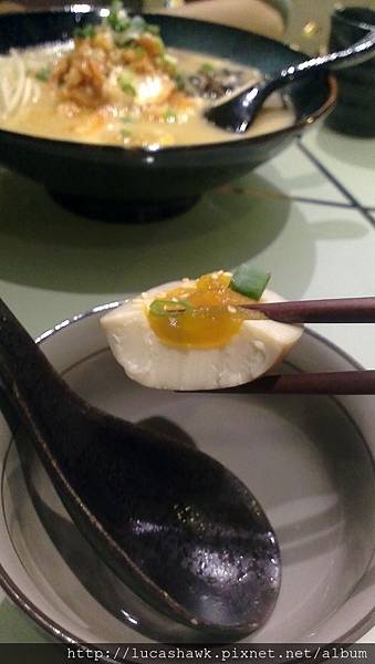 兩份糖心蛋,為什麼是兩份呢~~因為我以為一份是半粒,結果來了兩顆蛋,加上拉麵裡面還有半片,哈!還好口感還不錯~~嚴格要挑毛病的話,蛋白有點過老