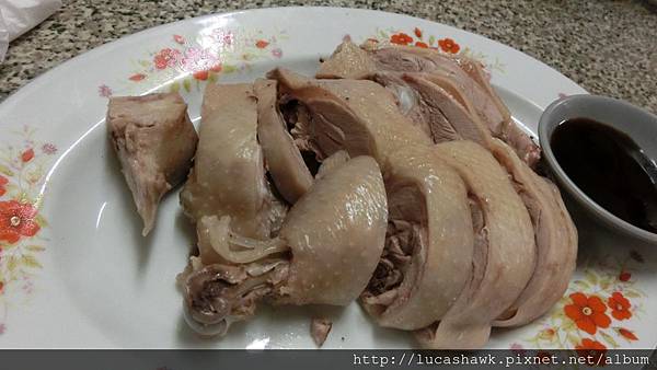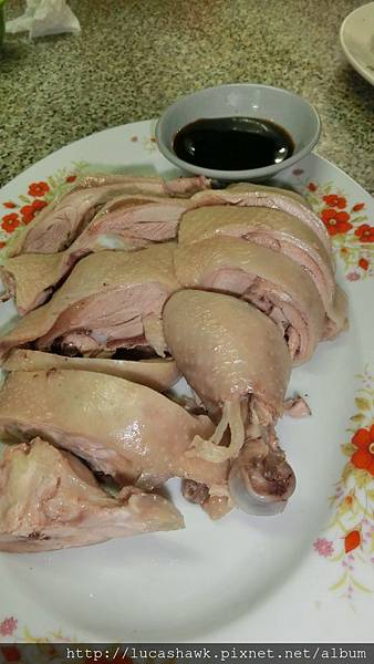 白切雞,除了這白白嫩嫩的雞肉外,有看到那皮跟肉之間那塊呈現半果凍狀態的雞油嗎?整塊雞肉可不是從冷凍拿出來切就上桌喔!!他剛好在不冷不熱的狀態下上桌,整個你可以吃到半果凍狀的雞油,卻不會讓你覺得膩,雞肉柔軟鮮甜,我完全沒沾醬油膏,雞皮細嫩,每塊都很有肉吧~~(而且這是小盤喔~~)
