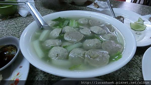 貢丸湯,有夠大氣的貢丸湯,上桌整個就是物超所值的感覺,他們家的貢丸是不用錢呀~~這麼大顆又給這麼多!!太夠意思了啦~~簡單的青菜點綴,簡單的提味,相當好喝。