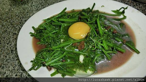 炒過貓,還放了顆生蛋,這是太美觀了吧~~用豆豉拌炒後加上一顆蛋,口感上比較磨,加了顆生蛋,讓口感更加舒服(我是這樣覺得啦!!哈!!)