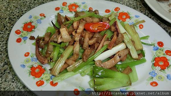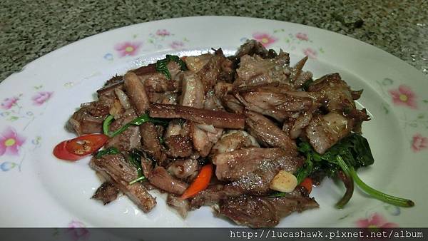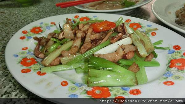 炒骨肉,骨肉就是豬頭肉,別看他黑黑的,這盤不簡單,肉質柔軟卻不失彈性,剛炒出來有夠香,我姊夫吃第一口就說讚了~~而且每塊都不算小喔!!
