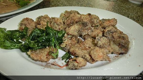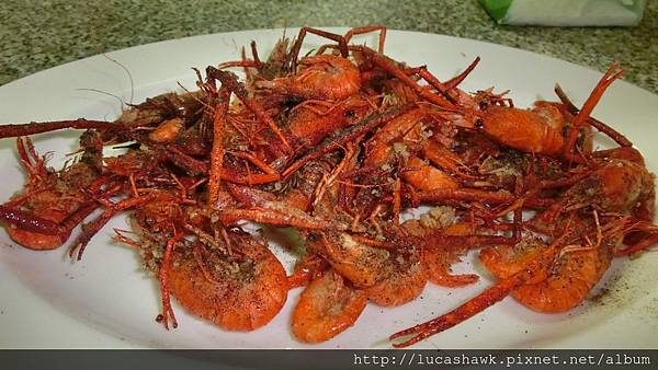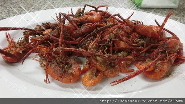 炸溪蝦,這個一定要推一下,阿公突然過來說"這是沒污染的,連螯都可以咬,嚼個36下就好",害我們差點噴飯,好可愛的阿公,
