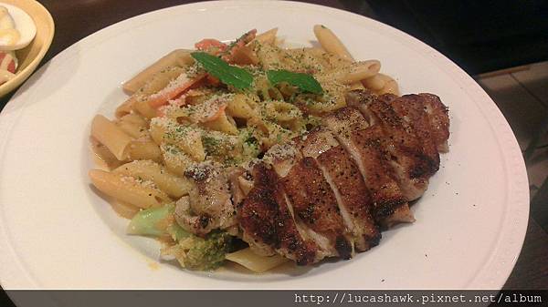 我點了美式雞腿排筆管麵,是粉紅醬喔~~醬汁超好吃,圓潤的口感,不會太多也不會太少,剛好吃完一盤,