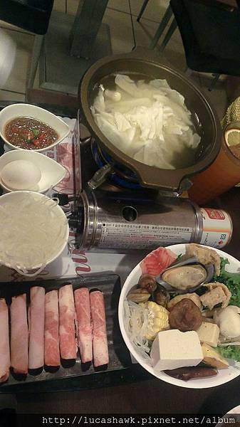 原味鍋,料給得相當足夠,除了豬肉外,還有魚肉還有顆牡蠣,這也太豐富了吧~~不過....青菜好像有點少~~