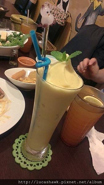 (推推指:各位看官有注意到左下角有個"相當明顯"的隱藏菜單嗎? 呵呵~~芒果奶昔,我的飲料就換了這杯~~喝了一口~~太銷魂了!!)