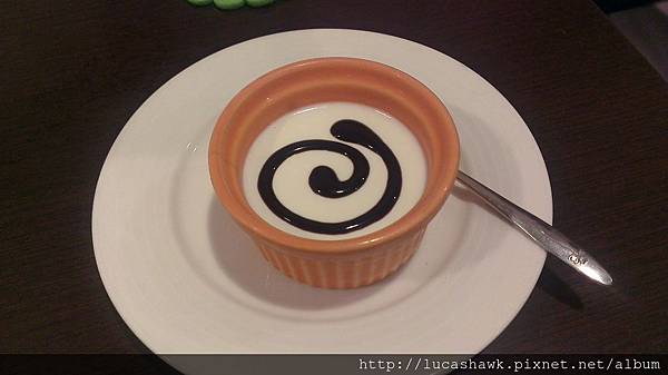 最後的甜點,不是奶香而已那麼簡單,上面是巧克力醬,搭起來讓我覺得還蠻特別~