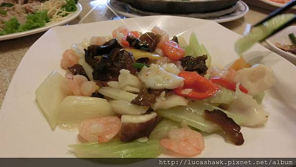 XO醬海中寶,終於看到一樣青菜了,芹菜脆口,淡淡的鹹味恰到好處,彈牙的蝦仁,居然夾不起來還彈開,海參Q彈,還有香菇、干貝、甜椒,好豐富呀~~