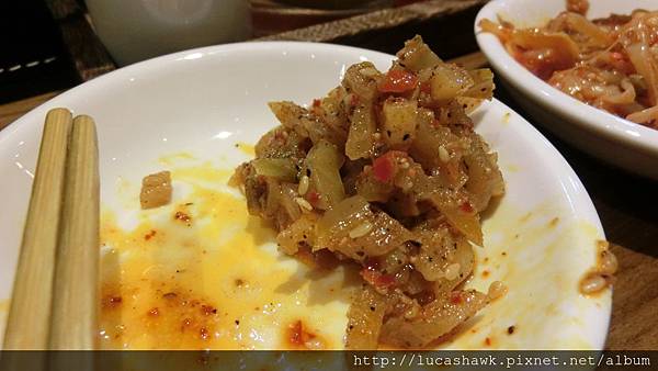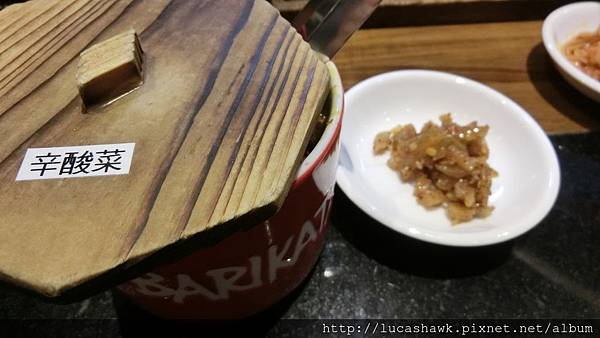在等待的過程,可以先吃他們的小菜,辛酸菜(吃辛酸的.....哈),其實酸還好,倒是真的蠻開胃的,酸菜切丁有點不太好夾,但是咀嚼上還不錯~哈!!