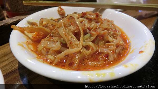 還有辛豆芽,我覺得豆芽很好吃,小辣,口感不錯!!我光吃就吃了兩三盤。