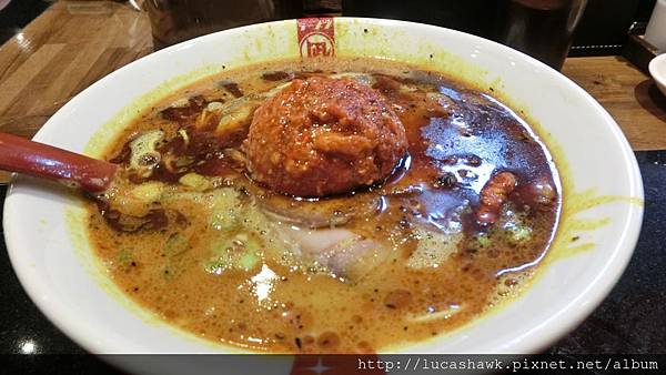 你可以很明顯分辨出來各種食材跟味道,難道這就是層次嗎!!最先吃到的是濃郁的咖哩味,再來將赤王丸拌開,豆瓣醬的辣慢慢擴散!!層層堆疊,加上我點的是細麵,整個麵條吸滿湯汁,雖然是選擇硬的細麵,但是口感上相當搭,整個可以用吸的把麵吸進嘴裡,哇!!濃厚的豚骨香開始散發,搭配熱情地又不會太辣的豆瓣醬還有咖哩作伴,整個就是一個滿足啊!!!