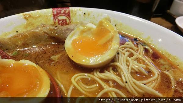 都忘了介紹加點的"半熟蛋",他真的是半熟的!!會有蛋汁流出來喔!!這個好!!!不是糖心蛋喔!!也不是黃金但那種糊糊的,他是介於流質跟糊糊的中間,而且蛋白的部分也不是像滷蛋一樣有點硬,而是軟Q軟Q卻又一戳就破,爆漿囉!!!