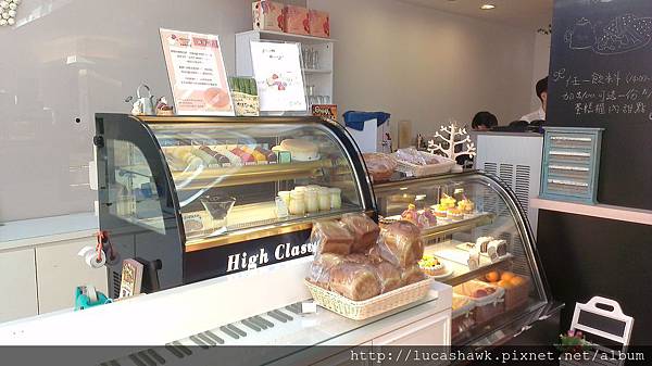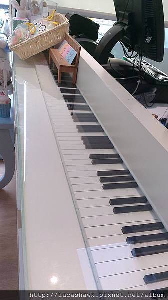 鋼琴吧檯是結帳台,放著各式小品的蛋糕甜點,小巧可愛的甜點櫃,付帳的時候,手指頭會不經意的跳動一下。