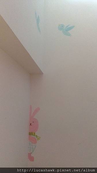 樓梯間有小兔子在偷看~~哈,利用簡單的繪圖及可愛壁貼點綴,相當可愛喔!!