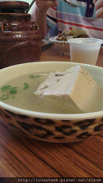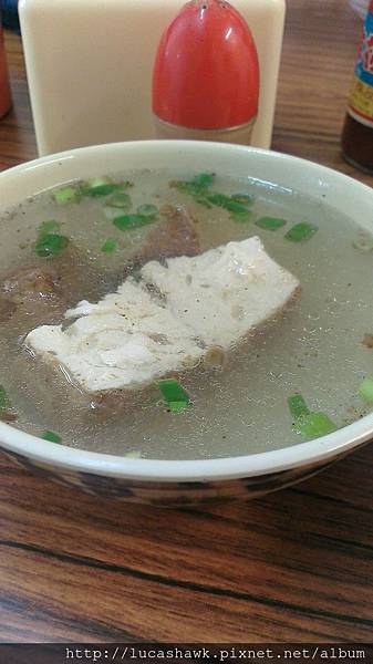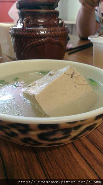 還有這碗豆腐湯,坊間小吃店的豆腐湯都是小小塊在裡面游來游去,這店家也夠大氣,直接給你一塊"豆腐磚",夠意思了吧~~哈