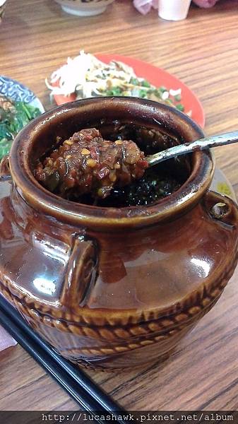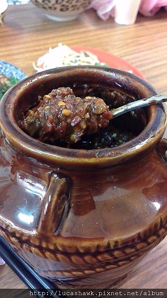 本日爆點,就是這讓我又愛又恨的辣豆瓣,我平常不吃辣的,但是麵線沒有加黑醋提味,我就會加辣椒醬,桌上有兩種辣椒醬,一種是傳統瓶裝的辣椒醬,另外就是這壺,我第一眼看到覺得應該不會太辣頂多鹹一點,殊不知~~我錯了~~這也太過癮了吧!!辣卻不會讓你喉嚨痛,因為她很香,辣的感覺是慢慢擴散的,很香,又讓我噴汗。