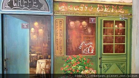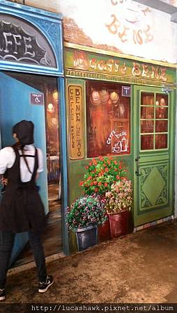這是將廁所外牆塗成另外一間咖啡店,當你開門就進到另外一個世界~~是不是有巧思~~~