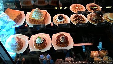 看看櫃台櫥窗裡的好吃甜點,看起來就整個擄獲人心呀!!!不但有蜜糖吐司、還有鬆餅、鹹的甜的都有喔!!!