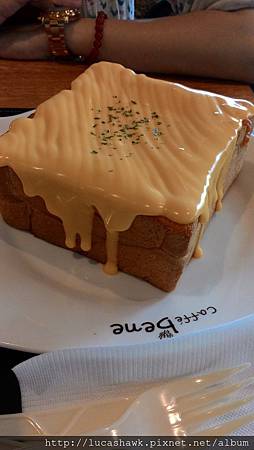 我們今天點了看起來很美味的,好像大家都會點的"蒜香起士吐司"、"藍莓派思脆"、"五穀拿鐵"~~