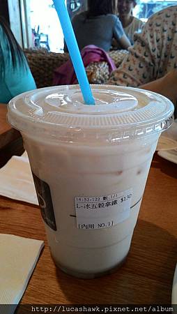 搭配這杯香濃五穀拿鐵,說真的,濃郁的穀物味道搭配香濃的拿鐵牛奶,真的是相當舒服,冰塊剛剛好,慢慢融進去調和拿鐵的濃度,讓你每一口都感受到均衡的拿鐵味道,瞧瞧底部沉澱的五穀粉就知道這個夠扎實,好味道!!