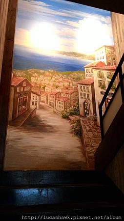 樓梯間也很特別,看起來像不像是實境,彷彿我們就從樓梯走下來,面對著小徑,漫步在歐洲。