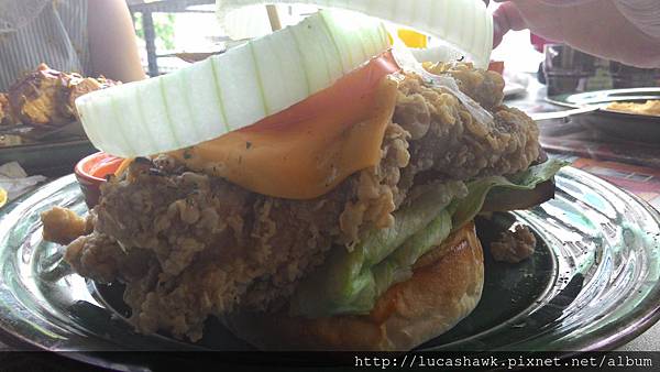 第五棒,超厚雞排堡,缺點之一,洋蔥內皮沒弄好,露在外面有點像是衛生紙一樣,不太舒服,