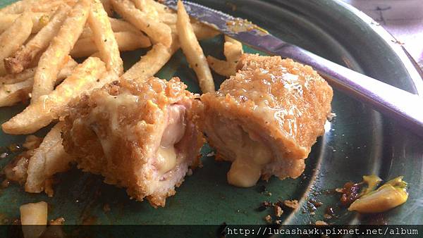 一種包起司,這雞肉捲肉蠻乾的,還好她有包起司,不然真的很難下嚥