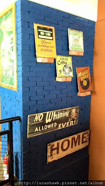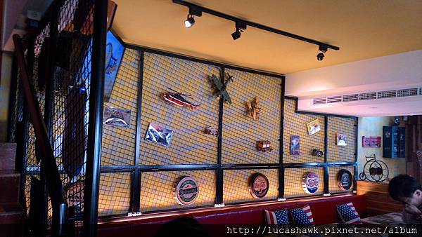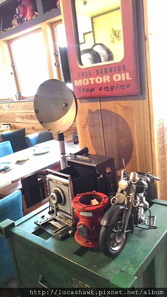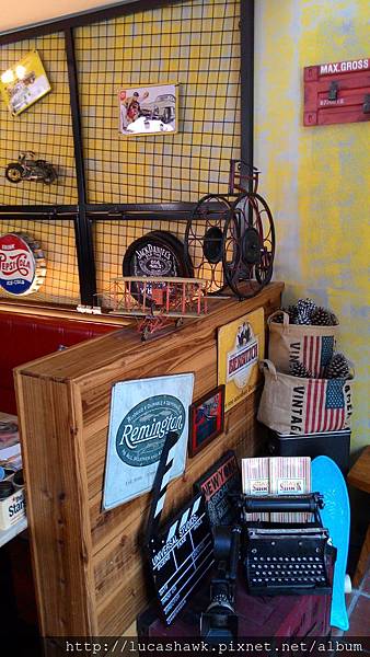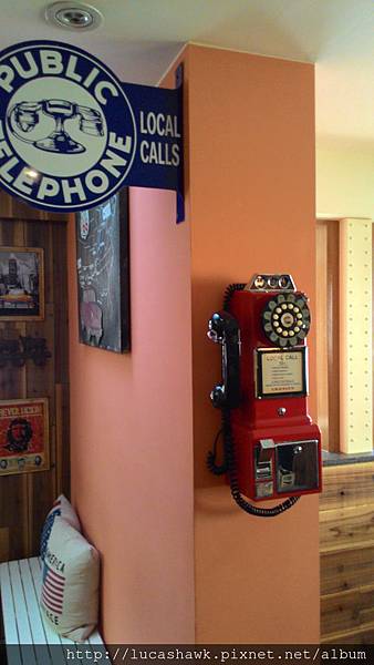 一樓擺飾也相當有趣,有復古相機,牆上還有復古電話,相當美式的裝潢。