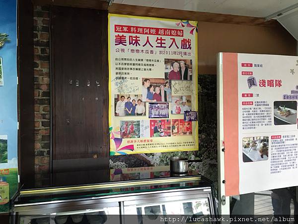 到了我才知道這裡正是公視劇場-「戀戀木瓜香」這部電影的餐廳ㄟ~~故事情節大概就是外籍新娘與傳統客家婆婆透過料理而化解心結的故事,我還真的有把這部電影看完,想不到誤打誤撞還真的來到這間店。