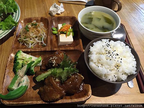 我的當然是大家狂推的家庭料理區的「媽媽的醬燒軟排」,看了介紹,原來是使用了黑糖細火滿燉帶著軟骨的黑豬肉,真的是入口即化,甜鹹適宜,就像是媽媽的溫柔,我被融化了。旁邊的配菜雖然簡單也不馬虎,也是可以吃得飽的喔!!相當推薦!!! 重點~~湯也蠻好喝的耶!!!