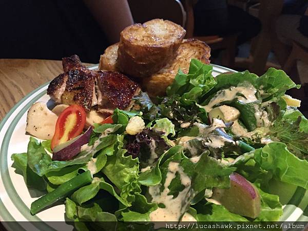 來到這裡一定要點一下早午餐,請翻到鹹食系,點法就是選一種麵包,搭一種主餐,配菜就是帶有點苦味的芝麻葉淋上沙拉醬也是相當好吃。