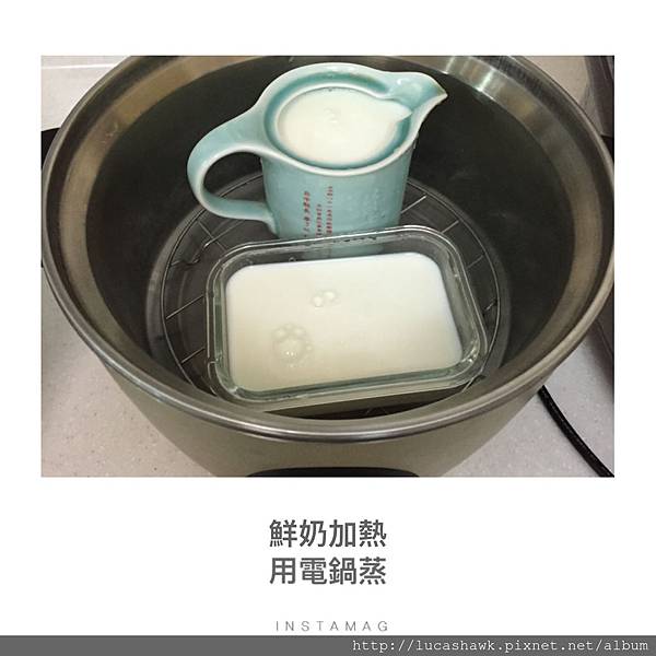接下來就是將鮮奶加熱,為什麼用電鍋不用微波爐,還不是因為要保留營養,哈~~
