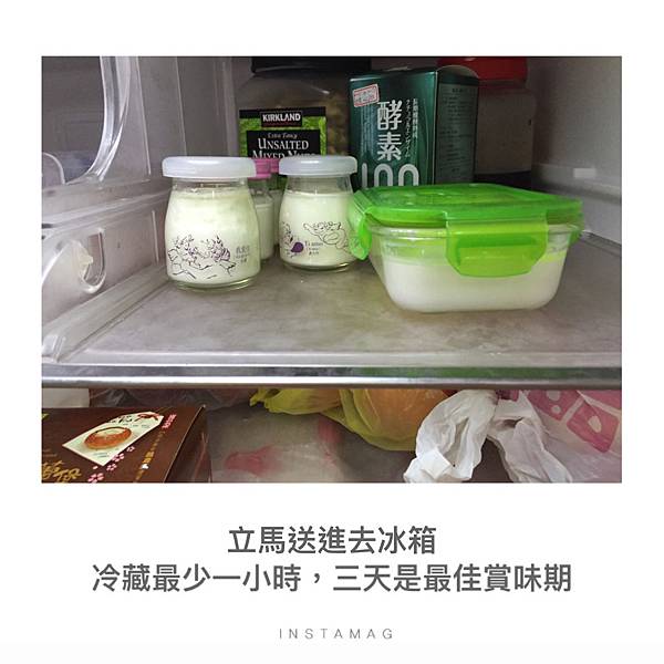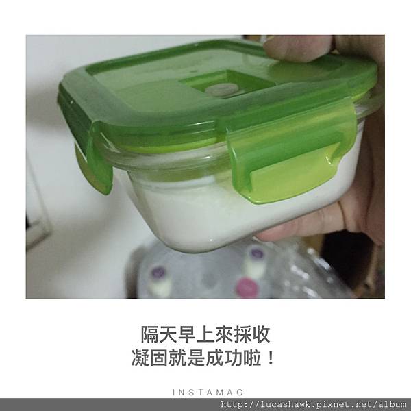 我通常都是晚上九點做,因為隔天要上班,8小時剛好是我起床後可以去收成,基本上輕輕搖一搖,會像布丁一樣抖動就算是成功了!!