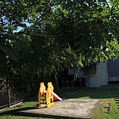 老闆的住家就在隧道對面,有一片舒服的草地跟大樹,老闆說,十二月初紅葡萄開始採收,接下來是黑葡萄,再來還有黃金葡萄,歡迎大家來,來這裡也可以品嘗葡萄酒,還有很特別的葡萄冰淇淋。