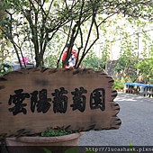 最後來到,男主角家裡的葡萄園,雲陽葡萄園,老闆夫妻都很喜歡看到遊客來參觀他們的葡萄園,很熱情的說著,大家都來找那個招牌,他就乾脆放在葡萄隧道的旁邊,讓大家比較好找。